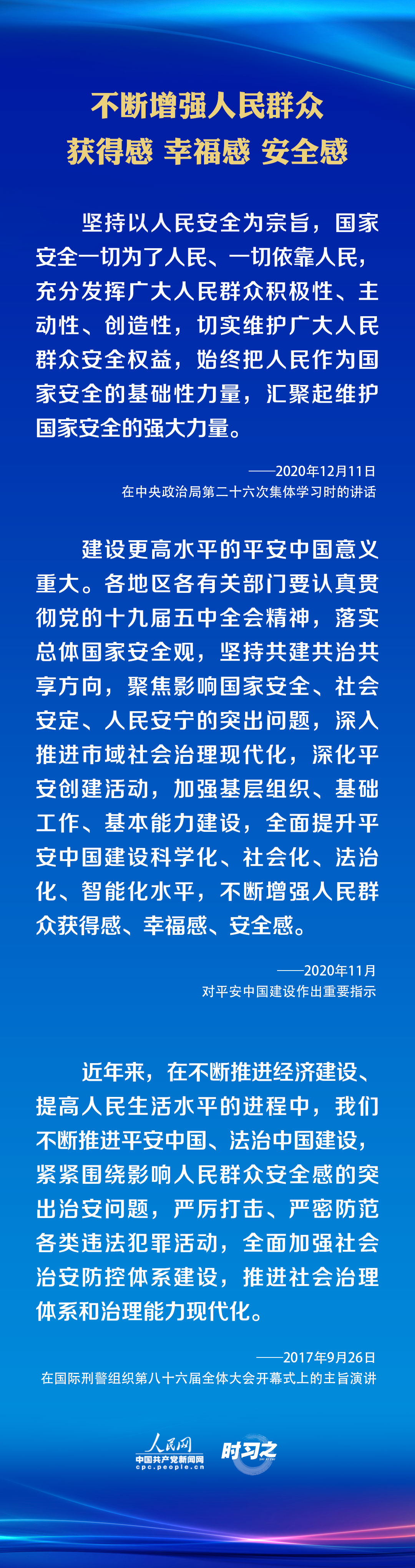 平安,民生所盼、發(fā)展之基。平安中國建設(shè),關(guān)系人民群眾的獲得感、幸福感、安全感。黨的十八大以來,習(xí)近平總書記高度重視平安中國建設(shè),多次作出重要指示,闡明了具有全局性、戰(zhàn)略性、基礎(chǔ)性的重大理論和實踐問題,為建設(shè)更高水平的平安中國領(lǐng)航掌舵。