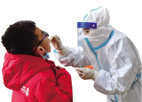 圖為12月18日,西安高新區(qū)丈八街道唐灃社區(qū)核酸檢測點的醫(yī)務人員在進行核酸采樣。本報記者 杜瑋攝