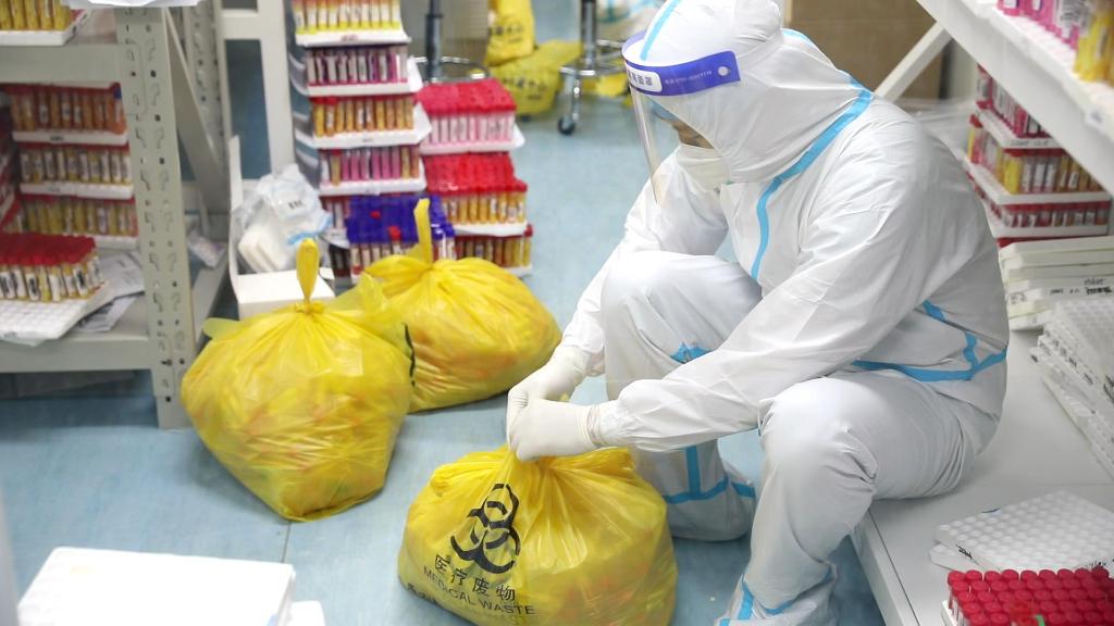 工作人員告訴記者,對(duì)于檢測(cè)后剩余的標(biāo)本,他們會(huì)嚴(yán)格按照醫(yī)療廢棄物品的相關(guān)規(guī)定進(jìn)行處理。比如,對(duì)于檢測(cè)呈陰性的標(biāo)本,會(huì)將其統(tǒng)一裝在黃色的垃圾袋中進(jìn)行消毒,并在垃圾袋上貼好警示封口,進(jìn)行高壓滅菌等一系列步驟后,送至下游公司進(jìn)行再處理。