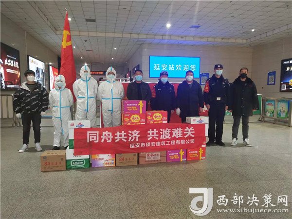 下午16時,延安市碩安建筑工程有限公司一行三人攜帶方便面、火腿腸、面包、飲料等慰問品來到延安火車站,向正在執(zhí)勤的民警、輔警表示感謝,同時提醒民警、輔警及防疫人員做好自身防護。企業(yè)負(fù)責(zé)人表示:延安鐵警舍小家、為大家,守護群眾的平安健康,這些防疫物資代表著我們對民、輔警及所有防疫工作人員的關(guān)心和敬意!