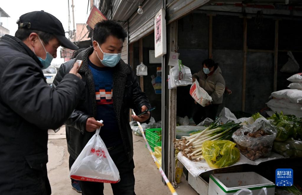 1月7日,西安市未央?yún)^(qū)西唐寨村村民在購買食品。