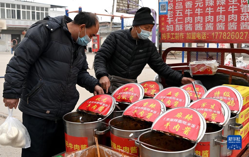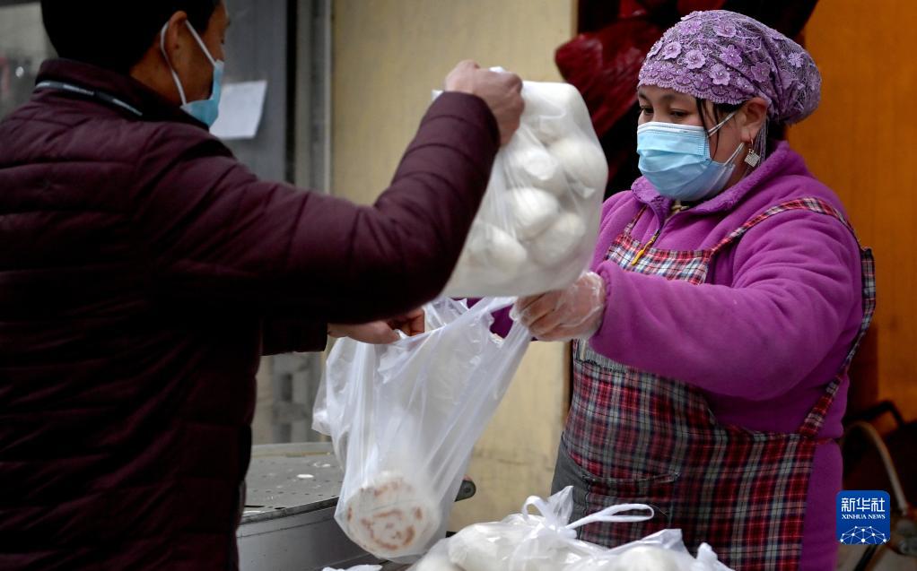 1月7日,西安市未央?yún)^(qū)西唐寨村村民在村里的饅頭店買饅頭。