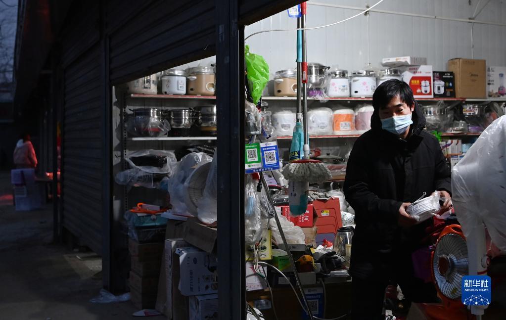 1月7日,西安市未央?yún)^(qū)西唐寨村村民在自家店內(nèi)理貨。