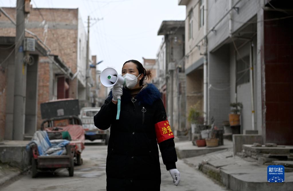 1月7日,西安市未央?yún)^(qū)西唐寨村志愿者在村里巡邏,對未居家的群眾進行勸返。