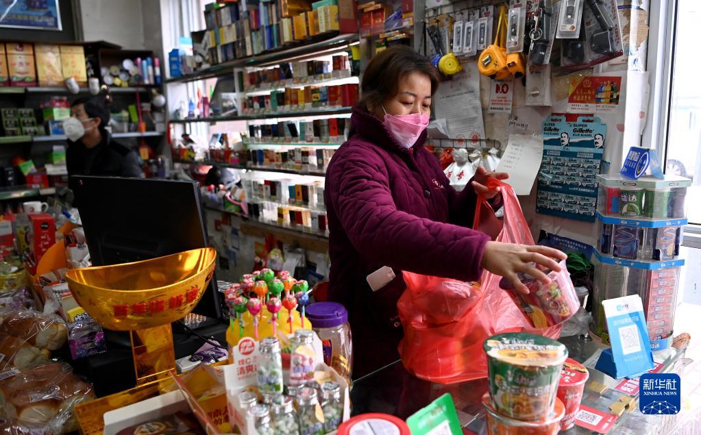 1月7日,西安市未央?yún)^(qū)西唐寨村村民在超市購買商品。