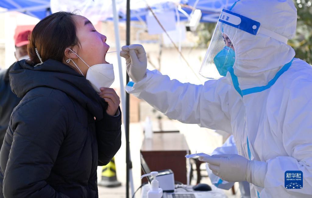 1月7日,西安市未央?yún)^(qū)西唐寨村村醫(yī)在為村民進行核酸檢測。