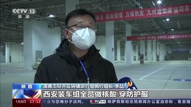 渭南市經(jīng)開區(qū)轉(zhuǎn)儲運(yùn)行組執(zhí)行組長 李喆:專車通道、裝卸組人員是分離的,西安這個(gè)裝車組全員做核酸、穿防護(hù)服。西安車輛過來,駕駛員不下車,全程貼封條,24小時(shí)不間斷兩班倒。