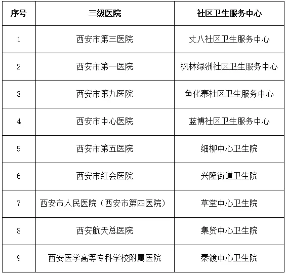 指定市屬三級醫(yī)院9家,對口支援高新區(qū)9個社區(qū)衛(wèi)生服務中心(或鄉(xiāng)鎮(zhèn)衛(wèi)生院,下同)(對口支援關系見附件),簽訂對口支援協議,下派內科、外科、婦產科醫(yī)務人員駐點社區(qū)衛(wèi)生服務中心坐診,另外由西安市兒童醫(yī)院、西安市中醫(yī)醫(yī)院向丈八社區(qū)衛(wèi)生服務中心、楓林綠洲社區(qū)衛(wèi)生服務中心、魚化寨社區(qū)衛(wèi)生服務中心、藍博社區(qū)衛(wèi)生服務中心派中醫(yī)醫(yī)師和兒科醫(yī)師,確保社區(qū)衛(wèi)生服務中心能順利開展基本診療工作。高新區(qū)要加強社區(qū)衛(wèi)生服務中心硬件建設,配備必要的檢查、檢驗設備,確保能夠完成基本醫(yī)療所必需的檢查和檢驗項目。支援醫(yī)院與社區(qū)衛(wèi)生服務中心建立上下轉診關系,對超出社區(qū)衛(wèi)生服務中心診療能力的轉往上級醫(yī)院進一步診治,支援醫(yī)院應采取預約門診、綠色通道或預留床位等方式做好支持。