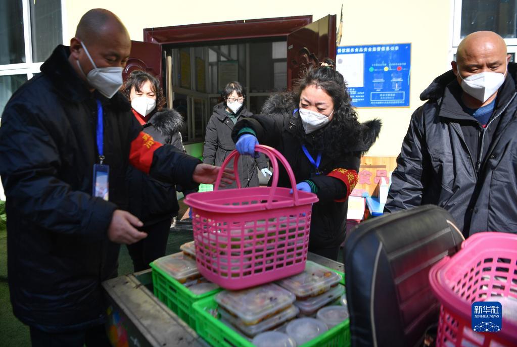 1月12日,三家村工作人員準(zhǔn)備為一戶居民派送午餐。新華社記者 張博文 攝