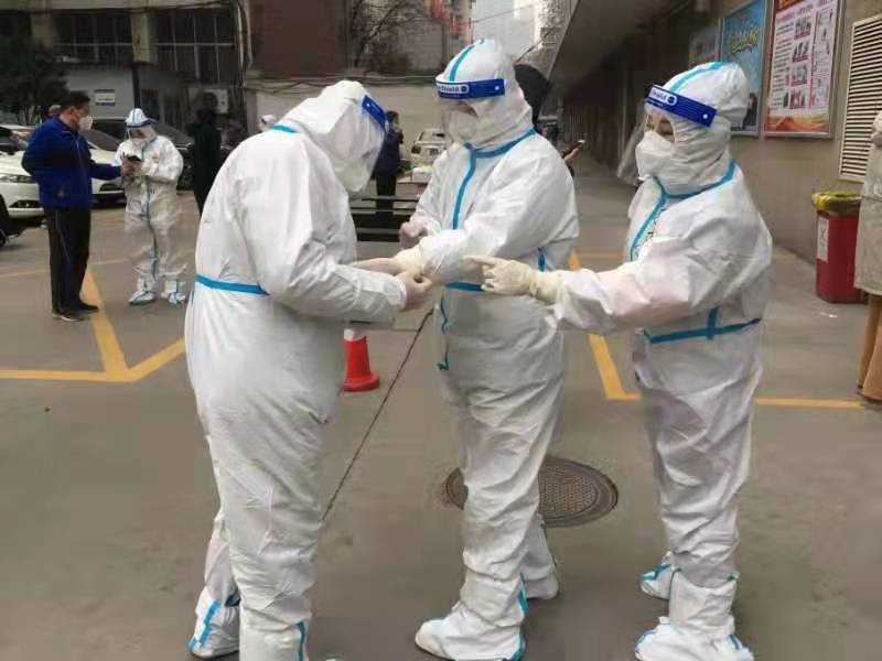 第二天一早,趙惠霞早早趕去碑林區(qū)文藝路街道文北一社區(qū)報(bào)道,開始了她志愿者生活。因?yàn)榉雷o(hù)服一旦脫下就會報(bào)廢,采集核酸樣本的醫(yī)護(hù)人員和志愿者為了不上廁所,都不敢吃飯、不敢喝水,堅(jiān)持到做完核酸才能吃飯。趙惠霞第一天下班回到家后,胃口大開,一個(gè)大暖瓶的水都喝光了。