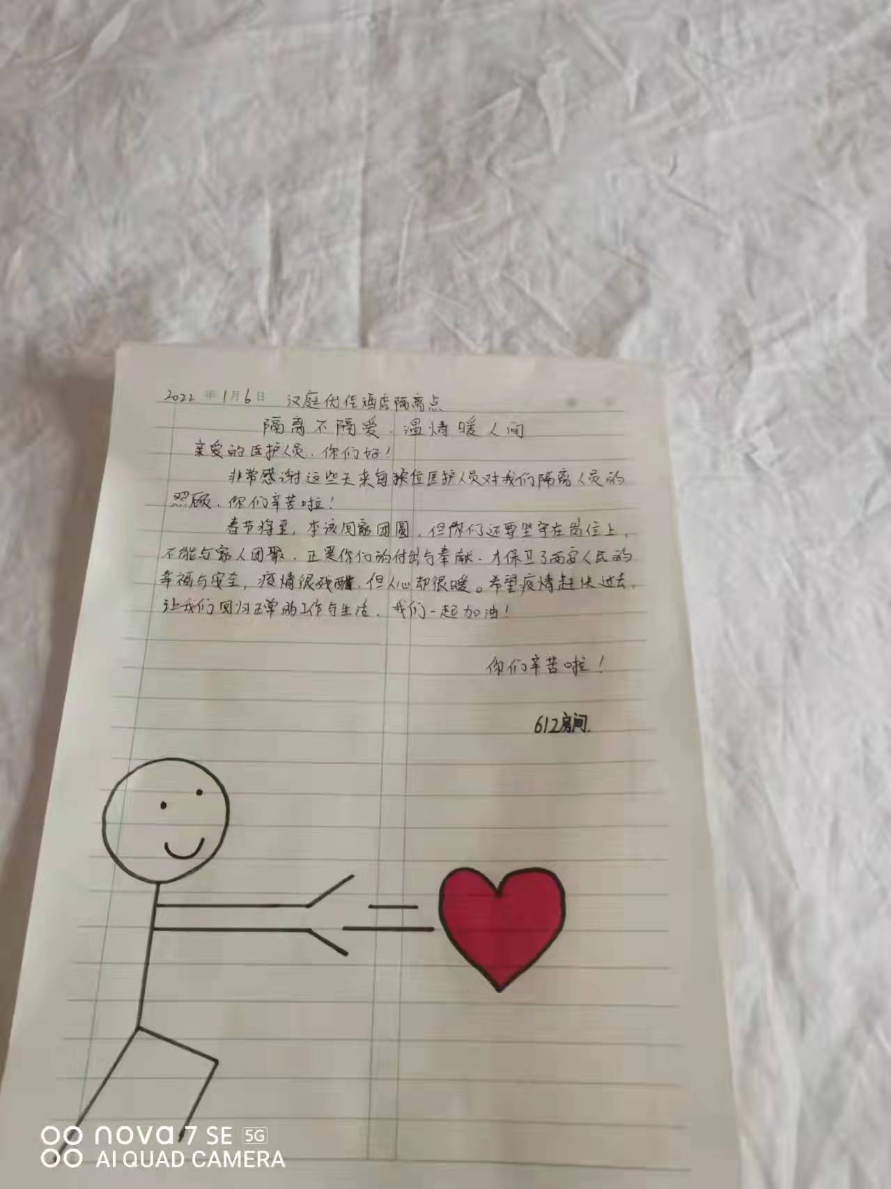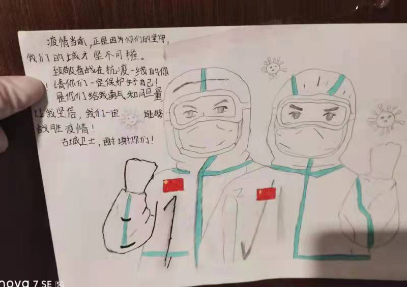 一幅幅手抄報(bào),一封封感謝信,一條條群留言,都在記錄著一個(gè)個(gè)勇毅且溫情的抗疫瞬間。“今天是我被隔離的最后一天,收拾好書(shū)包和小行李箱,準(zhǔn)備回家了,看著剩余的水果、零食,此刻心里不止是歡喜和激動(dòng),還有一絲不舍……”一名小學(xué)生在感謝信中寫到:“接到老師的通知,我們要集體隔離,內(nèi)心還有點(diǎn)害怕,不知該怎么辦,來(lái)到酒店后,看到張張和藹可親的臉,我的心放下了,你們?yōu)槲覀儾珊怂帷⑺惋埐?,讓我感到溫暖,感謝強(qiáng)大的祖國(guó),我們一定好好學(xué)習(xí),長(zhǎng)大做一個(gè)對(duì)社會(huì)有用的人”。據(jù)介紹,隔離期間,有四名12歲的學(xué)生是獨(dú)自隔離,沒(méi)有家人的陪護(hù),在工作人員每天的問(wèn)候中,他們懂事有禮貌,只要求工作人員幫他們打印作業(yè),每天在房間堅(jiān)持看書(shū)學(xué)習(xí)。
