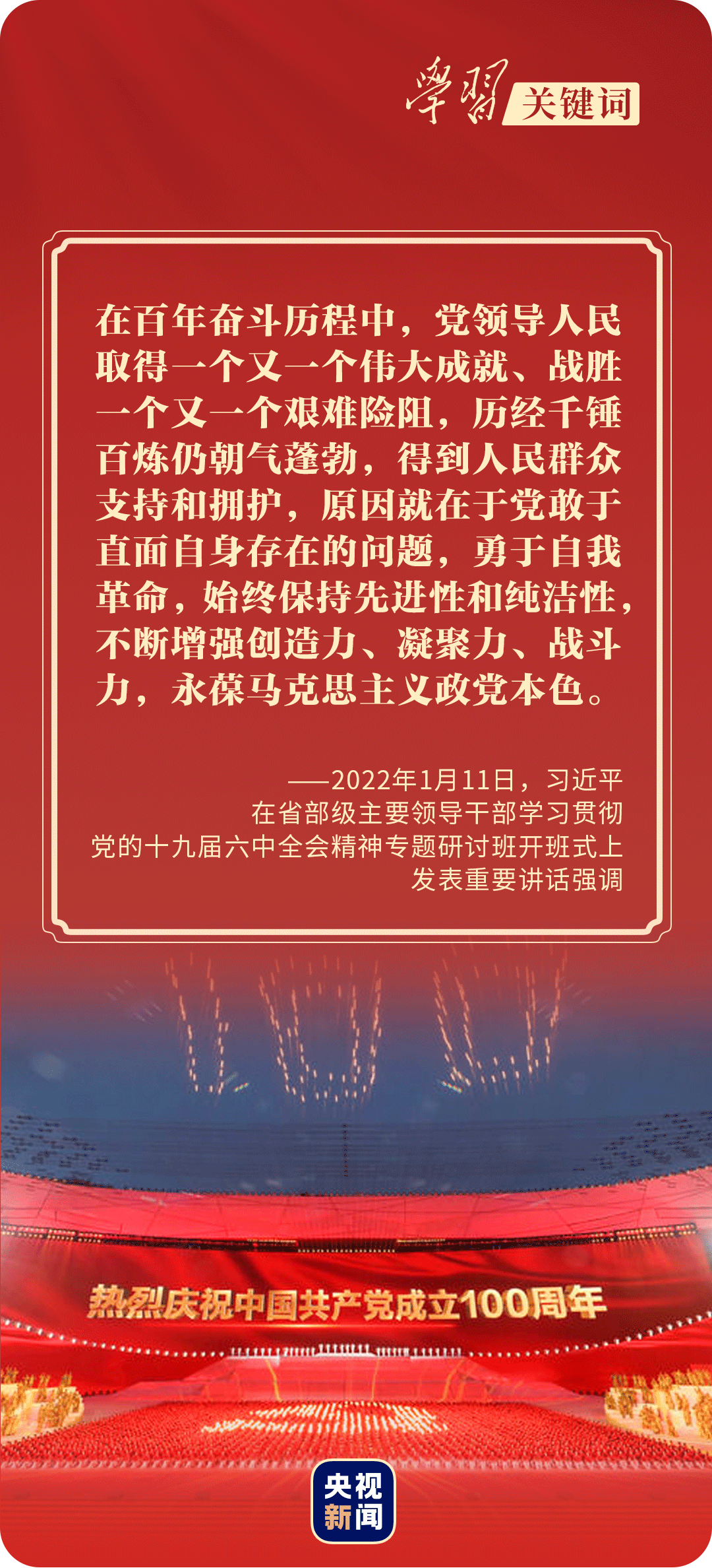 中國共產(chǎn)黨歷經(jīng)百年滄桑依然風(fēng)華正茂,其奧秘就在于具有自我凈化、自我完善、自我革新、自我提高的強(qiáng)大能力。