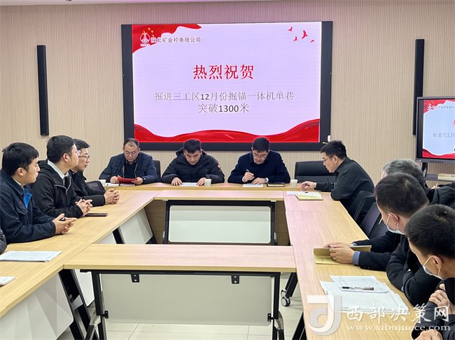 為鼓勵掘進(jìn)先鋒,樹立快掘典范。12月31日下午,公司副總工程師左影輝、機電物資中心經(jīng)理高永軍、副經(jīng)理楊輝在掘進(jìn)三工區(qū)學(xué)習(xí)室就此次成績進(jìn)行表彰并作出重要指示,工區(qū)在崗人員全部參會。
