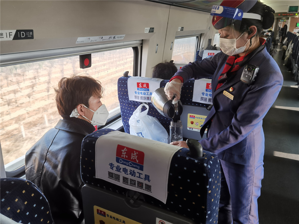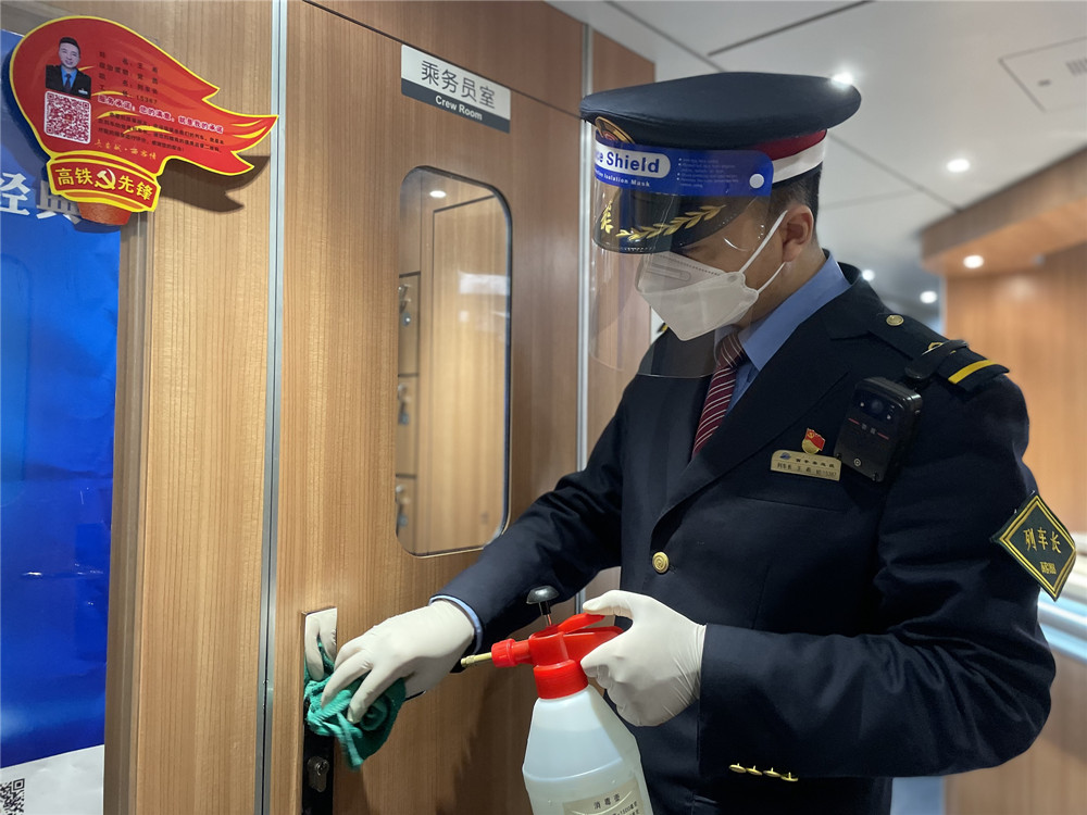 面對今年春運(yùn)疫情防控形勢和大客流安全運(yùn)輸壓力,全體高鐵乘務(wù)人員將嚴(yán)把安全關(guān),加強(qiáng)設(shè)施設(shè)備檢修維護(hù)。主動(dòng)做好疫情防控,加強(qiáng)車廂內(nèi)消毒和衛(wèi)生清掃、為旅客提供安全衛(wèi)生的餐飲產(chǎn)品,加密列車公共部位消毒頻次、科學(xué)做好發(fā)熱旅客處置、加強(qiáng)旅客防護(hù)用品佩戴提醒等,用心為旅客服務(wù),讓旅客平安健康出行。