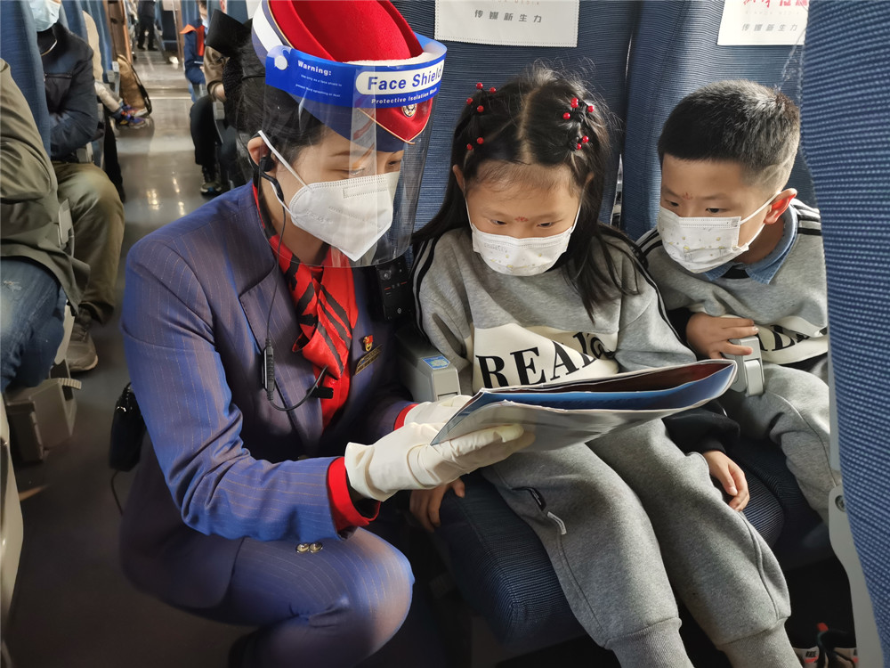 西安“高鐵先鋒”給乘車的小朋友介紹乘車安全知識。