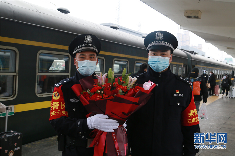 今年59歲的老汪是安康鐵路公安處乘警支隊(duì)的老乘警。1988年參加公安工作的他在紫陽(yáng)站派出所工作了13年。2001年調(diào)入乘警支隊(duì),在乘警崗位上一待就是21年。而今年的春運(yùn)對(duì)老汪來(lái)說(shuō)有著特殊的意義,春運(yùn)首日也是老汪最后一趟值乘。在安康站始發(fā)前,支隊(duì)政委呂昭琦專程送來(lái)鮮花表示對(duì)老汪多年工作的感謝。已堅(jiān)守34個(gè)春運(yùn),用老汪的話來(lái)說(shuō),自己沒(méi)有過(guò)轟轟烈烈的大事,只是做好本職的工作,從沒(méi)有對(duì)不起過(guò)頭頂?shù)木铡?/p>