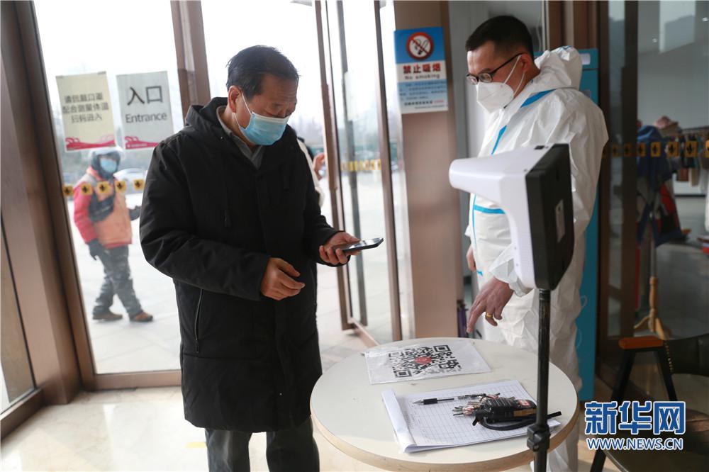 1月20日,西安市經(jīng)開區(qū)某商場內,市民在進入前進行掃碼登記。新華網(wǎng) 王智超攝