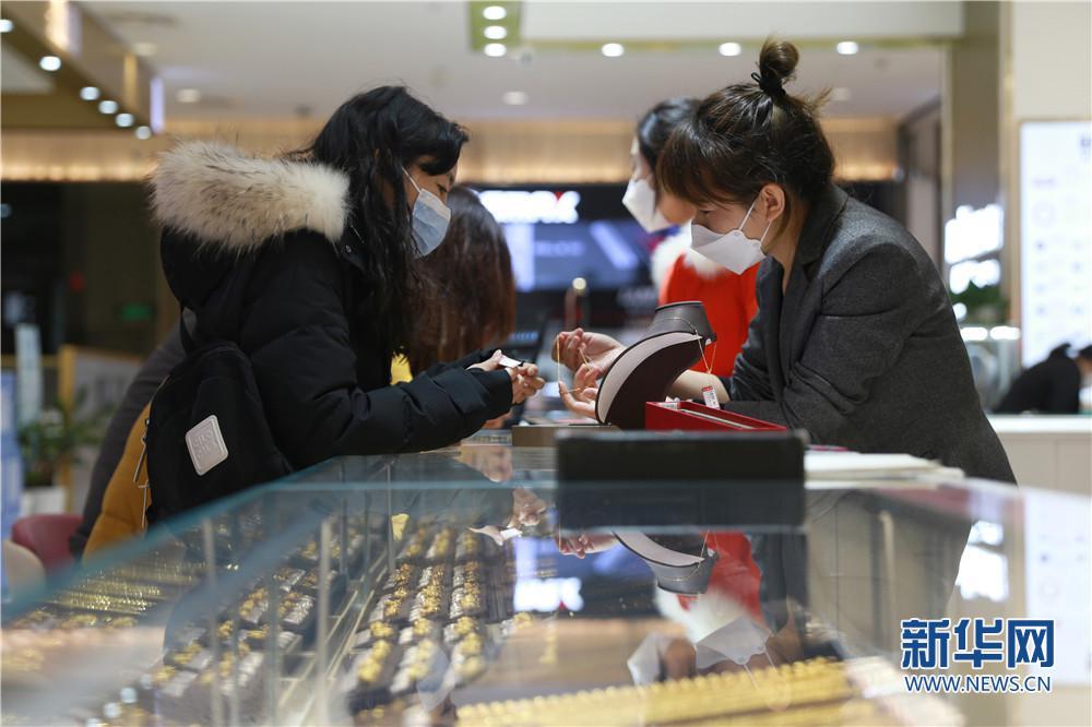 1月20日,西安市經(jīng)開區(qū)某商場內,市民在柜臺前咨詢飾品。新華網(wǎng) 王智超