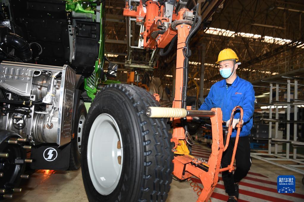 1月20日,工人在陜西汽車控股集團(tuán)有限公司總裝車間進(jìn)行重型卡車裝配。新華社記者 李一博 攝