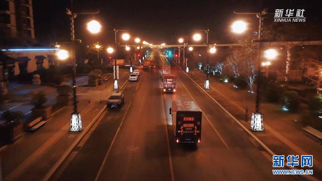 為保障全市居民生活必需品的供應,西安市28日晚開始,連夜為市民集中配送免費生活物資。新華社發(fā)