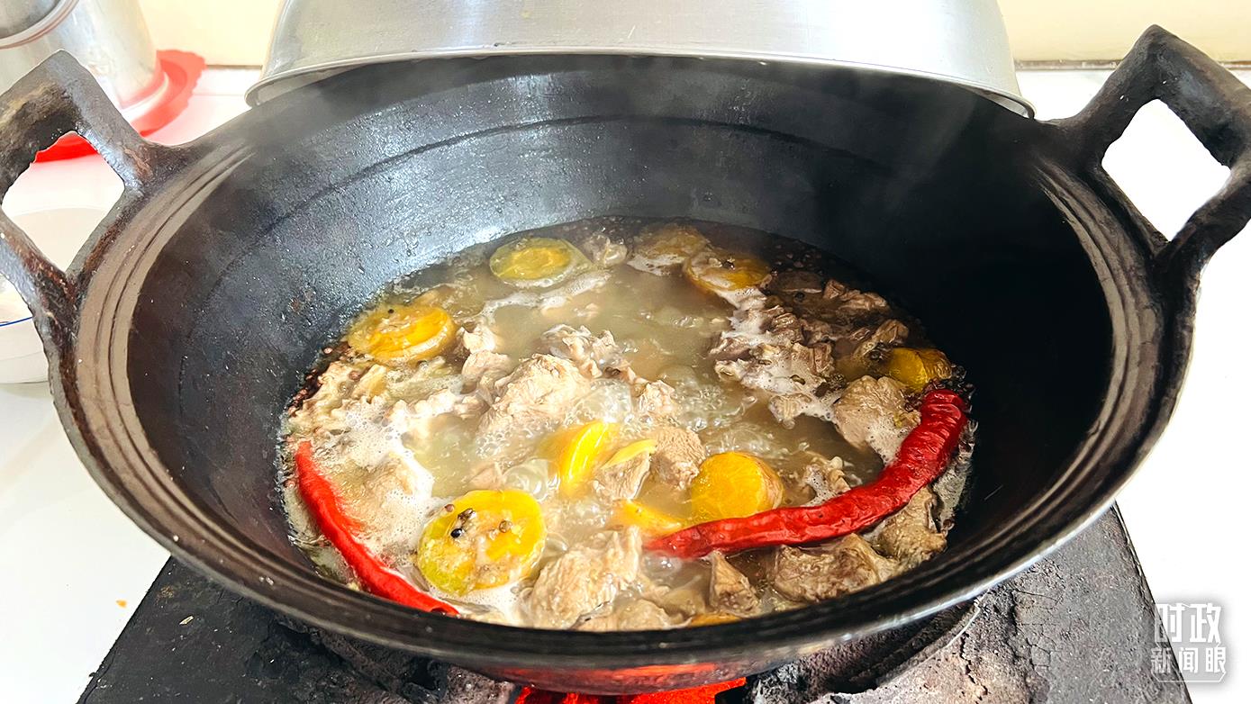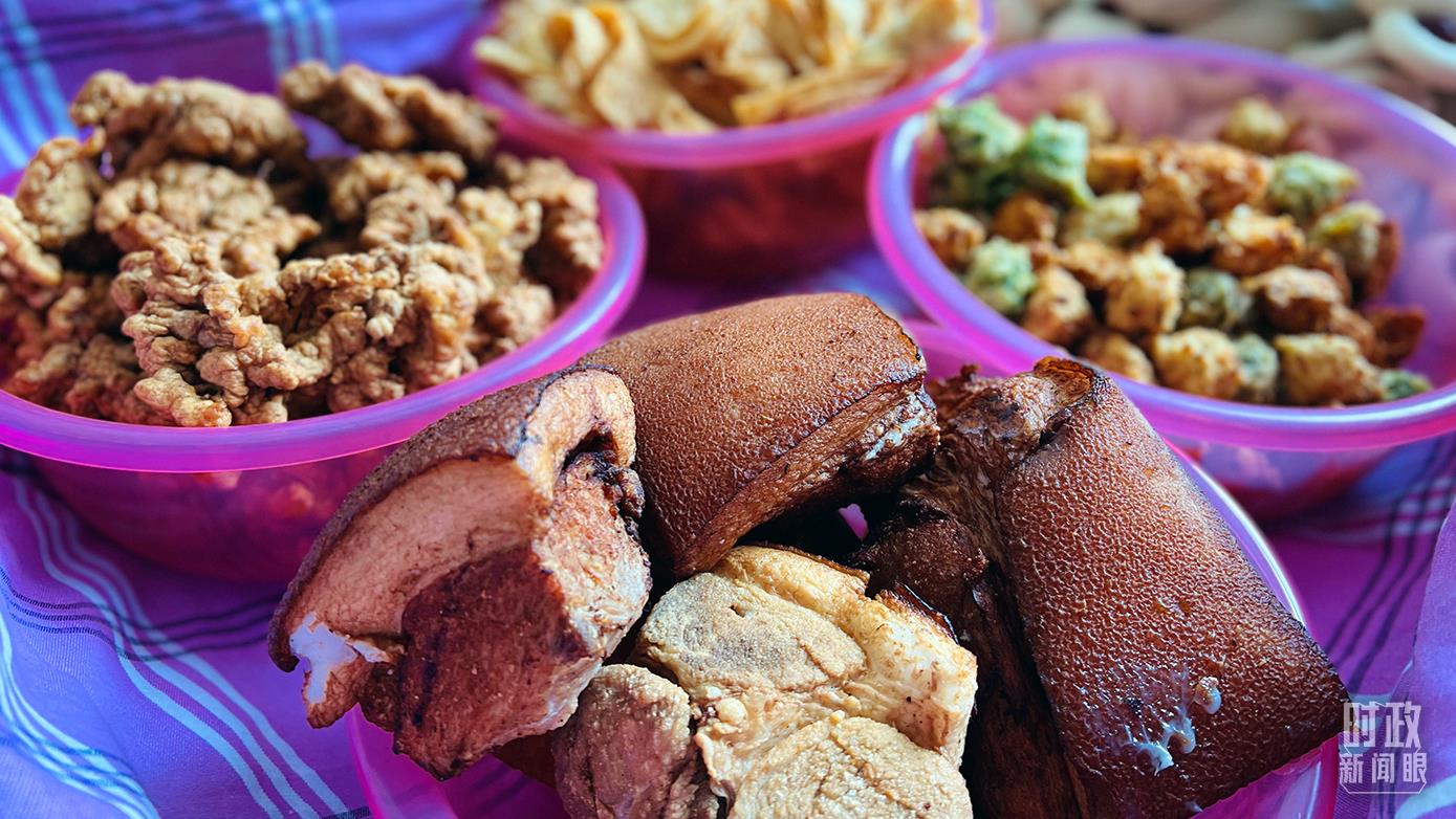 △蔡文明一家制作的燉排骨、年饃、紅燒肉、小酥肉等。(總臺央視記者鐘鋒、李輝、楊波拍攝)