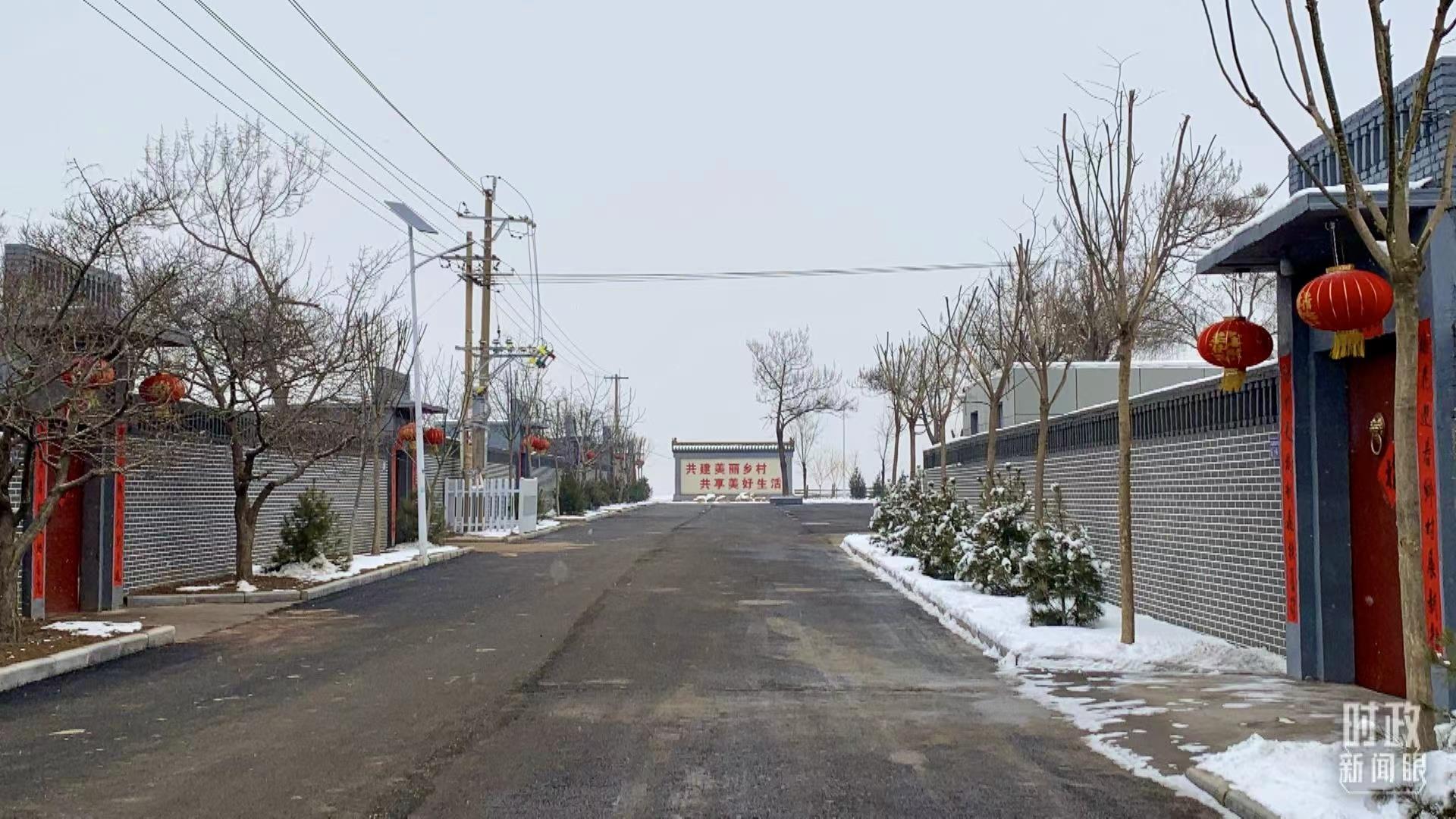 △馮南垣村修繕一新的大路,遠(yuǎn)處的標(biāo)語寫著“共建美麗鄉(xiāng)村 共享美好生活”。(總臺央視記者馬超拍攝)