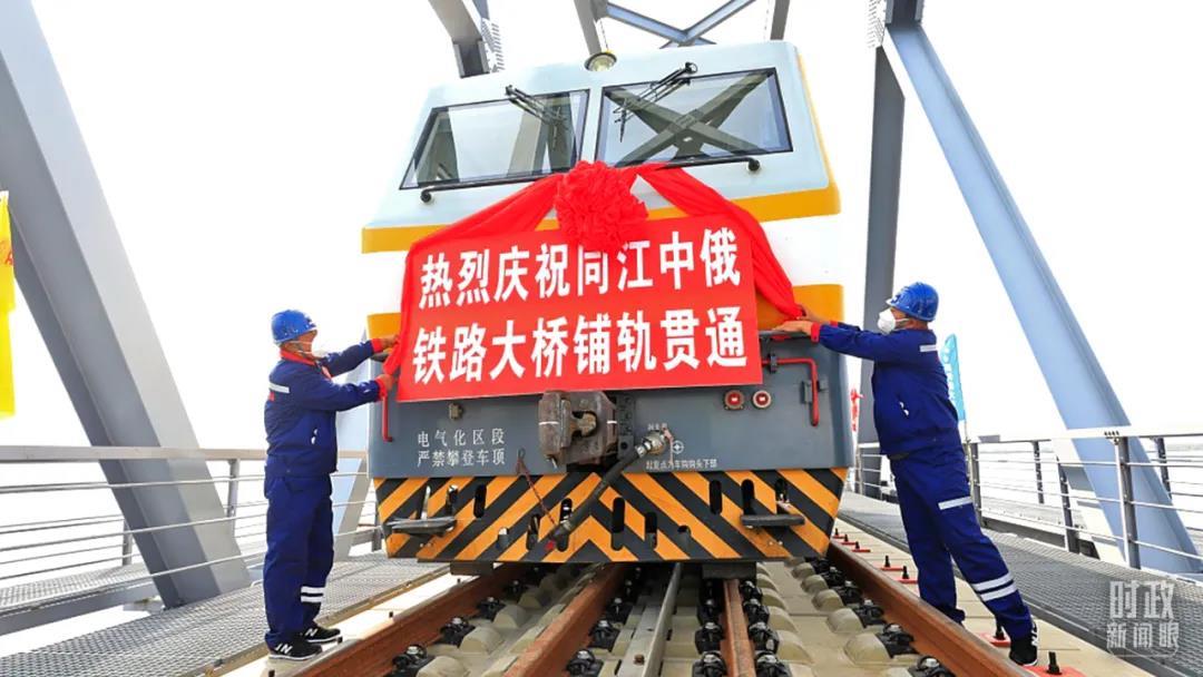 △2021年8月,黑龍江同江,中俄兩國(guó)首座跨江鐵路大橋?qū)崿F(xiàn)鋪軌貫通。(圖/視覺(jué)中國(guó))
