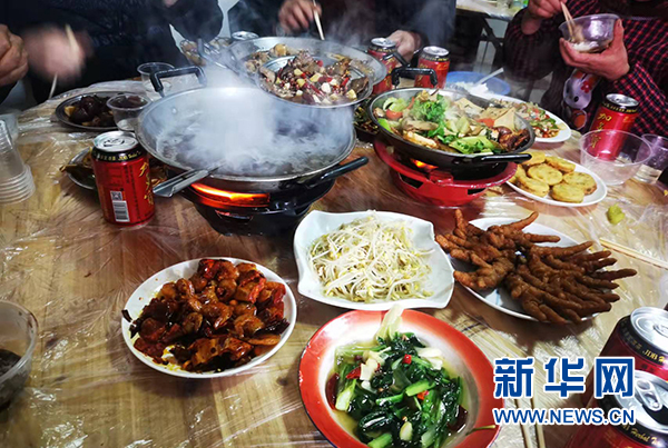 2月7日,當?shù)剞r(nóng)歷虎年的第一場壩壩宴。新華網(wǎng)發(fā)(譚俊 攝)