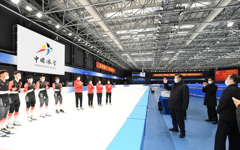 △ 2022年1月4日,習(xí)近平總書(shū)記在北京考察2022年冬奧會(huì)、冬殘奧會(huì)籌辦備賽工作。這是4日下午,總書(shū)記在二七廠冰雪項(xiàng)目訓(xùn)練基地速滑館,向參訓(xùn)運(yùn)動(dòng)員、教練員表示慰問(wèn)。