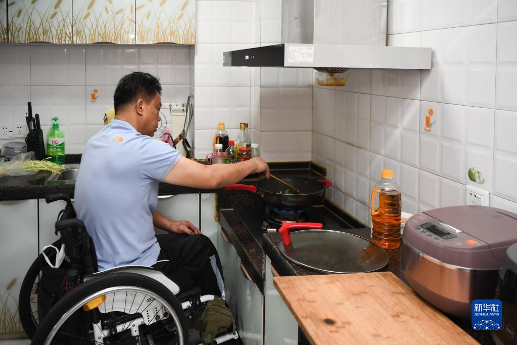 湖南省長沙市天心區(qū)家中,徐經(jīng)卓在定制低位灶臺上炒菜(2021年8月25日攝)。新華社記者 薛宇舸 攝