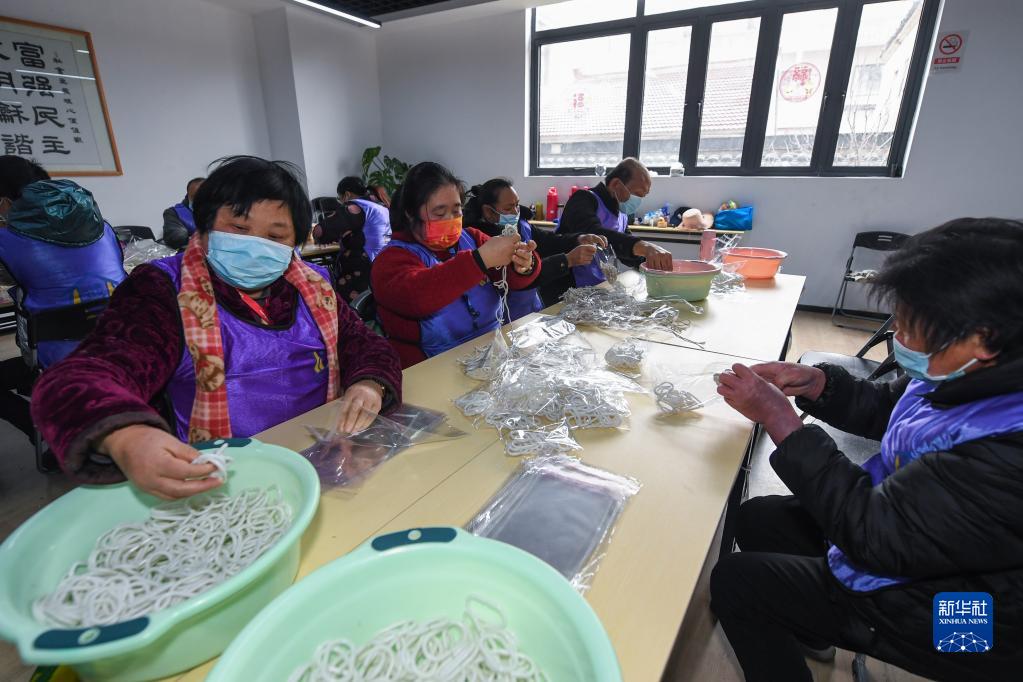 在浙江湖州市織里鎮(zhèn)港西村殘疾人之家,來自周邊的殘疾人正在打包配件(2022年2月22日攝)。完成工作后,他們可以獲得相應報酬和補貼。新華社記者 徐昱 攝