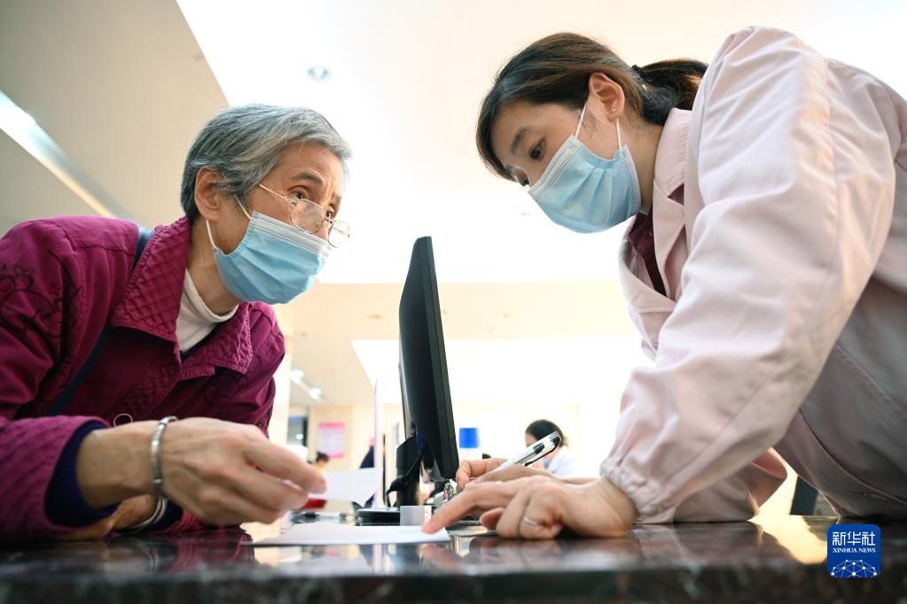 福建省三明市第一醫(yī)院的醫(yī)保辦工作人員(右)向前來咨詢藥品報銷問題的居民講解相關(guān)政策(2020年11月18日攝)。 新華社記者 姜克紅 攝