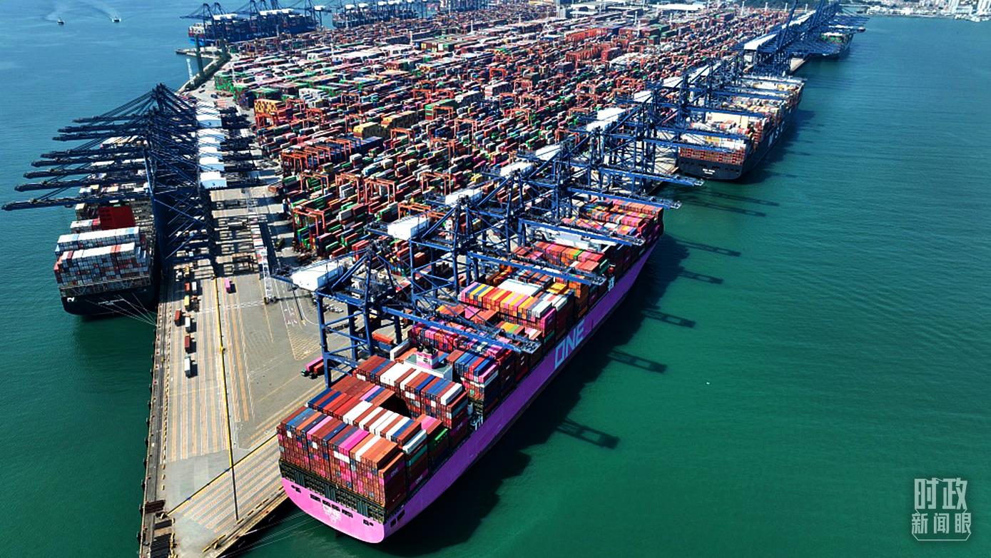 △2022年2月,深圳鹽田港,大型集裝箱船在港口裝卸貨物。(圖/視覺中國)
