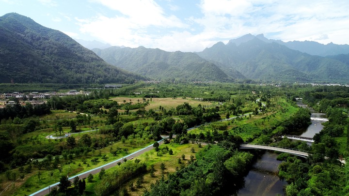 這是陜西省西安市長安區(qū)秦嶺違建別墅“群賢別業(yè)”拆除后建設(shè)的秦嶺和諧森林公園(2019年7月26日攝,無人機(jī)照片)。新華社記者 劉瀟 攝