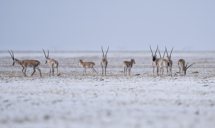 2021年4月20日,藏羚羊在三江源可可西里地區(qū)活動。新華社記者 吳剛 攝