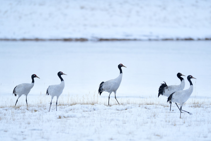 2021年10月21日在三江源國家公園黃河源園區(qū)內(nèi)拍攝的黑頸鶴。新華社記者 張龍 攝