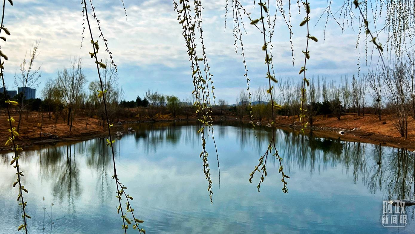 △公園內(nèi)的柳樹剛剛抽出新葉。(總臺央視記者程鋮拍攝)