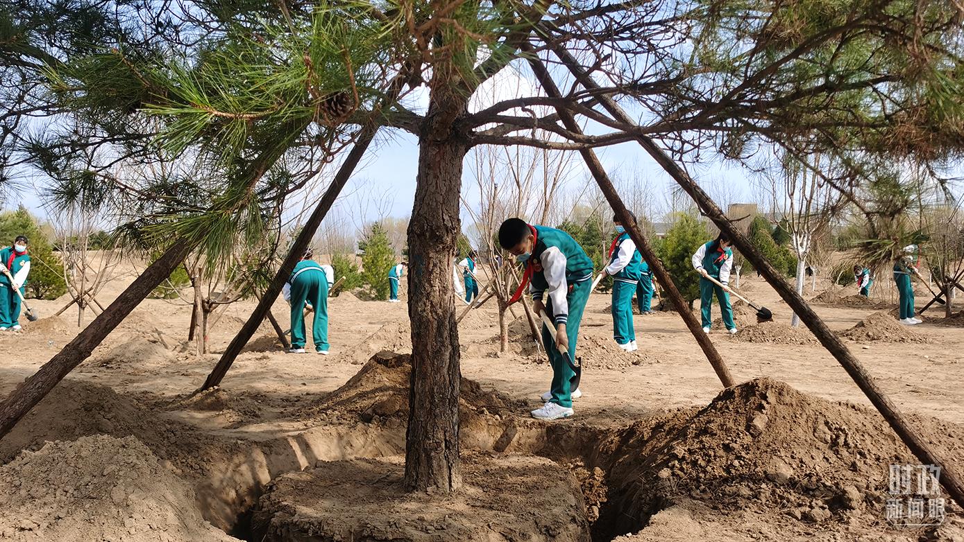 △當(dāng)天的義務(wù)植樹現(xiàn)場。(總臺央視記者張宇、趙鵬拍攝)