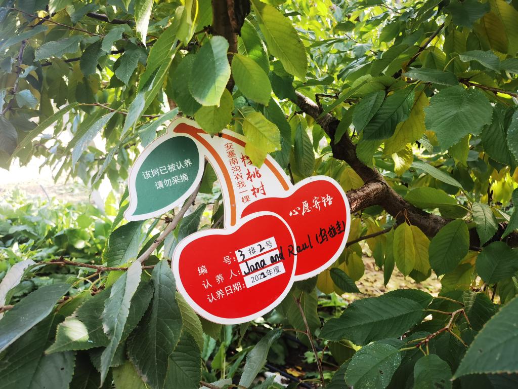 延安市安塞區(qū)高橋鎮(zhèn)南溝村的櫻桃園里,被國外消費者認(rèn)養(yǎng)的櫻桃樹。受訪者供圖