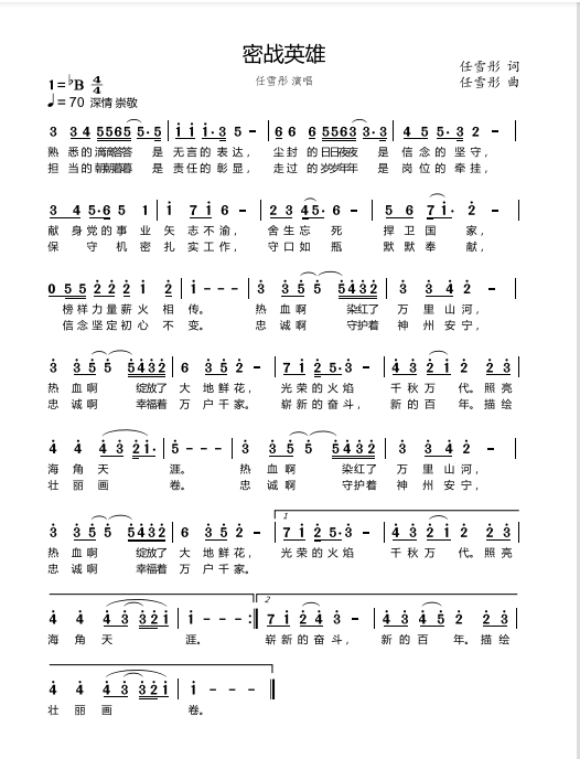 慶祝建黨百年獲獎(jiǎng)歌曲作品選集——《密戰(zhàn)英雄》歌詞。