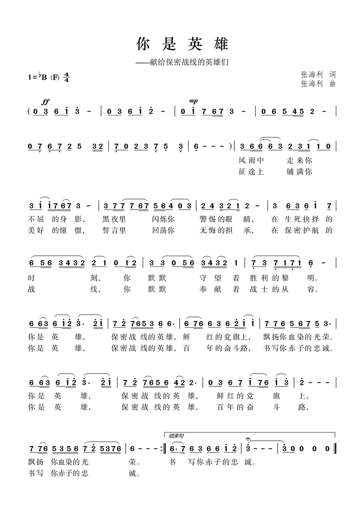 慶祝建黨百年獲獎(jiǎng)歌曲作品選集——《你是英雄》詞曲。