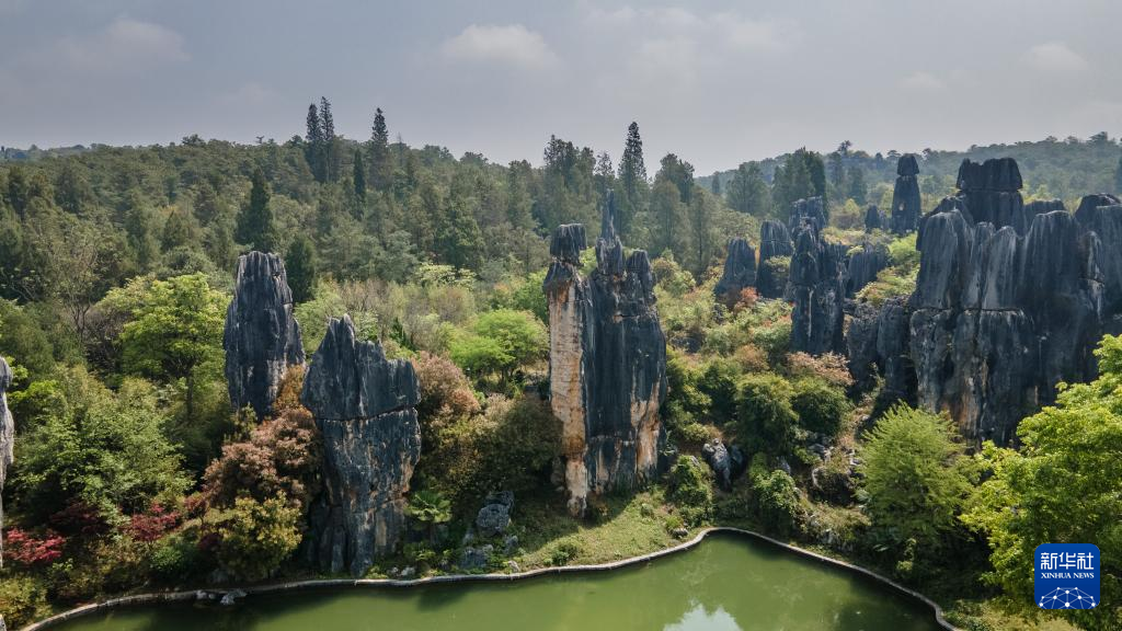 這是4月10日拍攝的石林景觀(無(wú)人機(jī)照片)。新華社記者 王冠森 攝