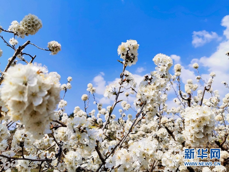 圖為湖北來(lái)鳳縣百福司鎮(zhèn)可洞村的櫻桃花迎風(fēng)搖曳,除了具有觀賞價(jià)值,4月底,游客還可前來(lái)體驗(yàn)采摘樂(lè)趣。