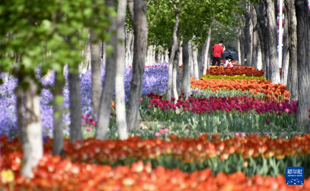 大興區(qū)北臧村鎮(zhèn)永定河畔的綠色港灣內(nèi)盛開(kāi)的郁金香(4月19日攝)。