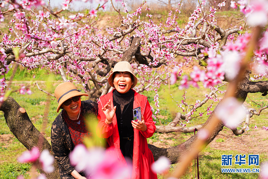 游客在臨潼零塬村桃花林賞桃花。新華網(wǎng)發(fā) 王三合 攝