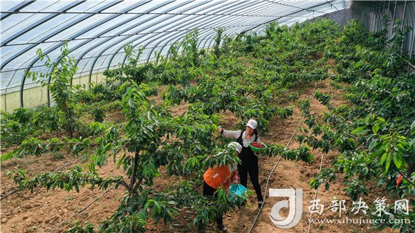 村民王大姐就是其中受益的一員。由于丈夫身體受傷不能干重活,弟弟身有殘疾,王大姐近幾年一直在產(chǎn)業(yè)園里打工。這份工作時(shí)間靈活,可以做到有事忙事,沒(méi)事上班。4月27日,王大姐正忙著在櫻桃大棚里采摘。提到這份工作,她心滿意足地告訴記者:“一小時(shí)10元,算下來(lái)平均一個(gè)月有2000多的收入。”除了這份收入,她家還種植了蘋(píng)果等經(jīng)濟(jì)農(nóng)作物,也能增加一些收入。