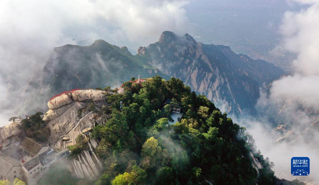 云霧縹緲的華山西峰(4月28日攝,無人機(jī)照片)。新華社發(fā)(楊瑞卿 攝)