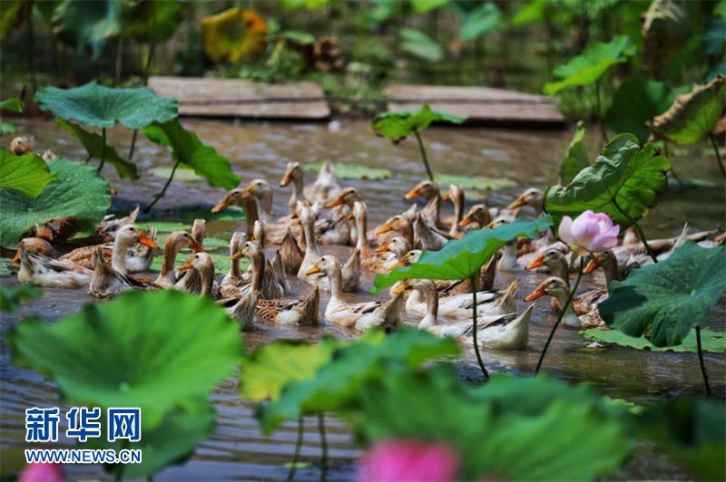 蓮都老竹鎮(zhèn)老竹村“蓮鴨共生”基地。新華網(wǎng)發(fā)