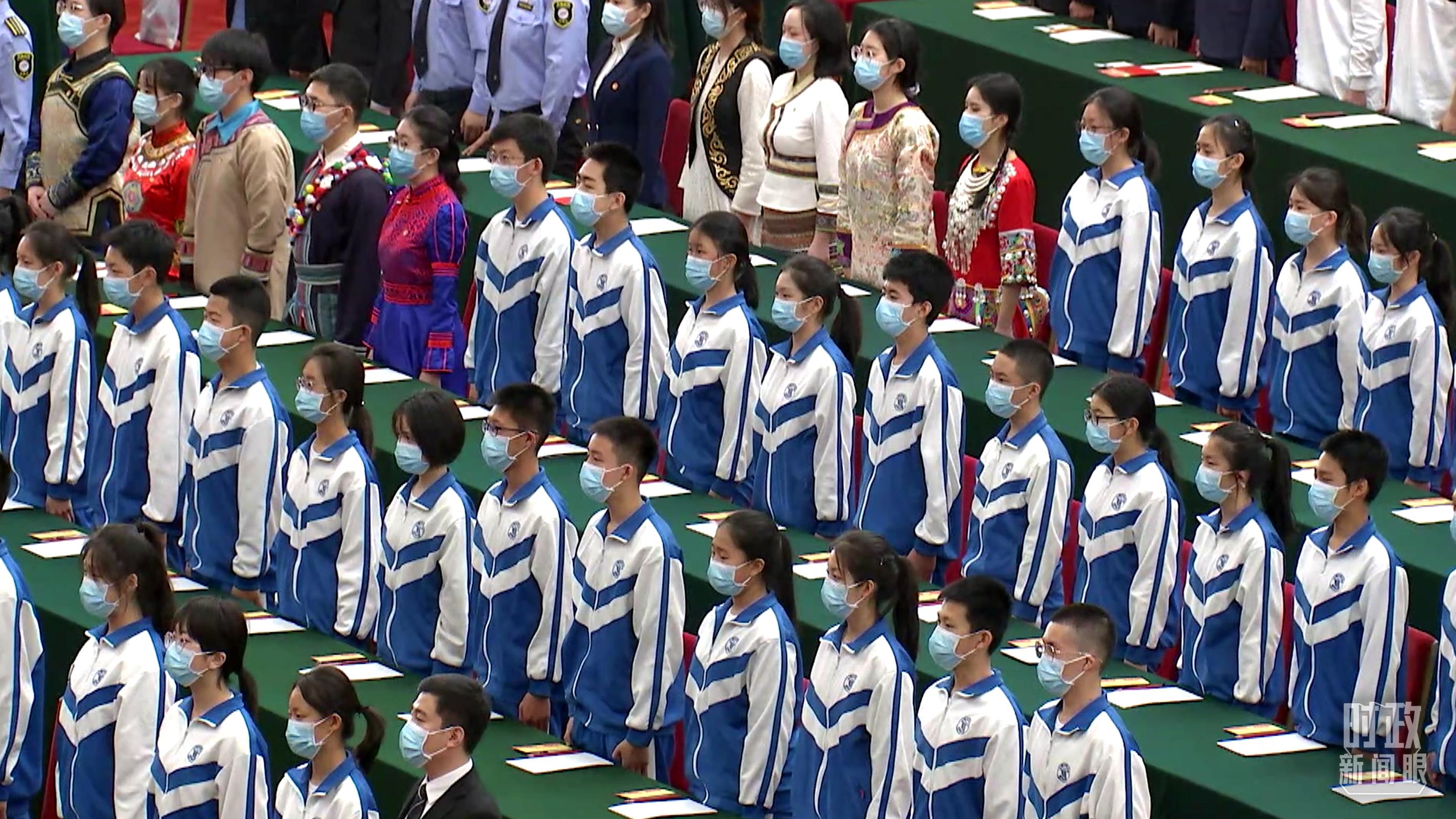 △北京市中小學(xué)生代表走入會(huì)場(chǎng)。(總臺(tái)央視記者 彭漢明拍攝)