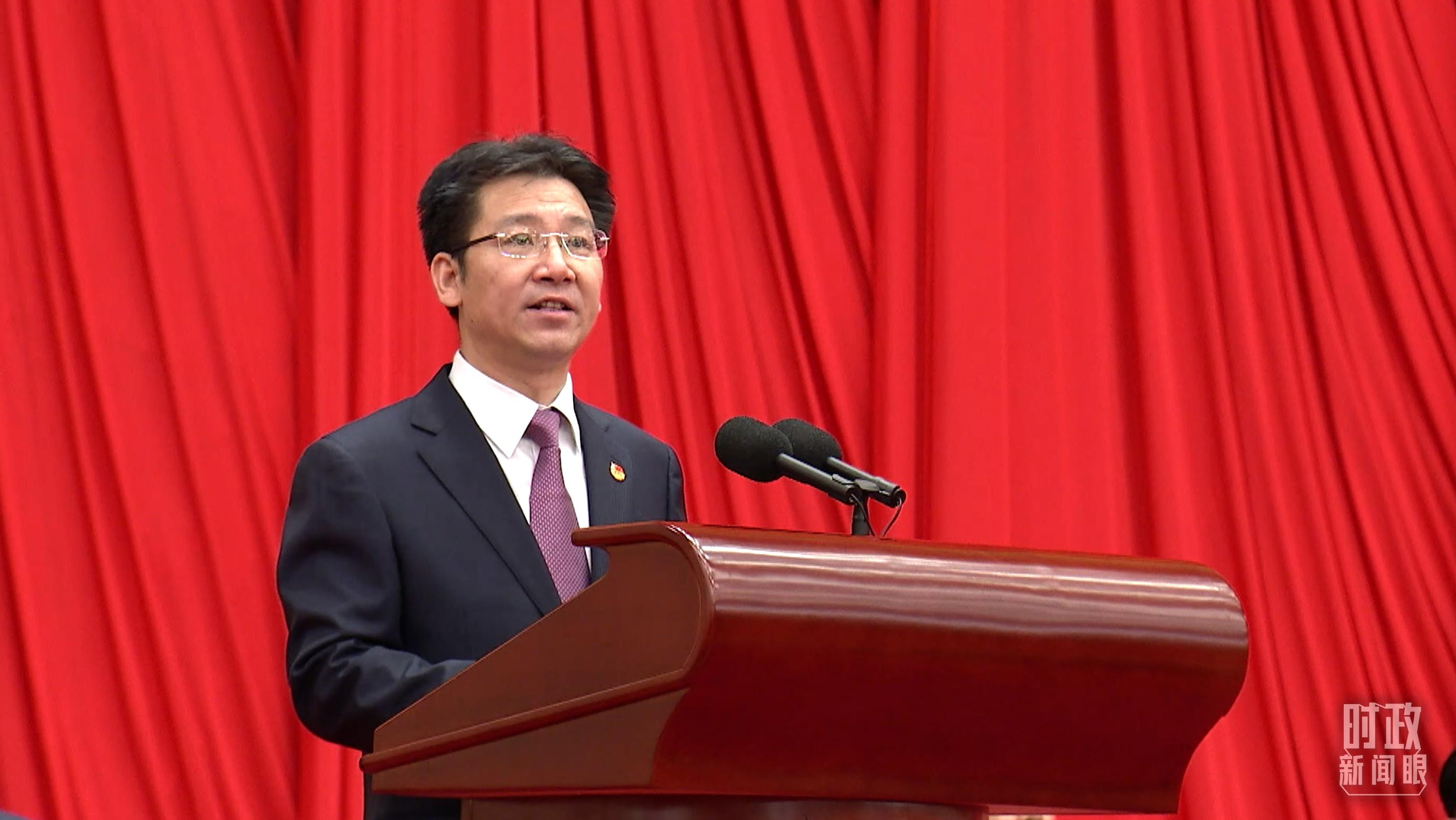 △共青團(tuán)中央書(shū)記處第一書(shū)記賀軍科在大會(huì)上發(fā)言。(總臺(tái)央視記者 張曉鵬拍攝)
